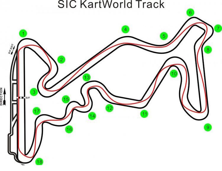 因此如果使用X30,Rotax Max Senior類的發(fā)動機,在圈速可以做到53s~54s左右后,再想提升圈速一般都是靠發(fā)動機了。另外也因這條賽道的高速特性,卡丁車可以在這條賽道利用尾流效應(yīng)來追近并實現(xiàn)超越。因此在這條賽道想要超越后迅速擺脫對手顯得比較困難,但也相對的,走理論上的最佳賽車線,和較窄的路線并不會影響圈速。所以比賽時看起來會異常激烈。