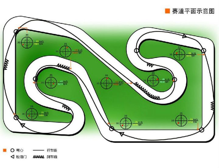 成都CESC流光速卡丁車場-是一條于今年進行重新修建的賽車場,原先本是度假村中娛樂用的賽道,現(xiàn)在改造后則是2015年CKC的一個分站。賽道全新,瀝青表面,很粗糙。因此賽車會比較容易推頭。整體風(fēng)格在深圳和三水之間,既有高速賽段也有低速賽段,但彎道數(shù)量其實不多。賽道比較窄,因此龍門架(圖中黑白格子線處)前后的高速直角彎比較關(guān)鍵,因為這直接決定了之后的大直道的尾速。比較有特點的是2號~3號彎及5號~6號彎,是高速直角彎后轉(zhuǎn)入下坡,并需要迅速制動的低速掉頭彎,需要車手有良好的反應(yīng)速度及體能。